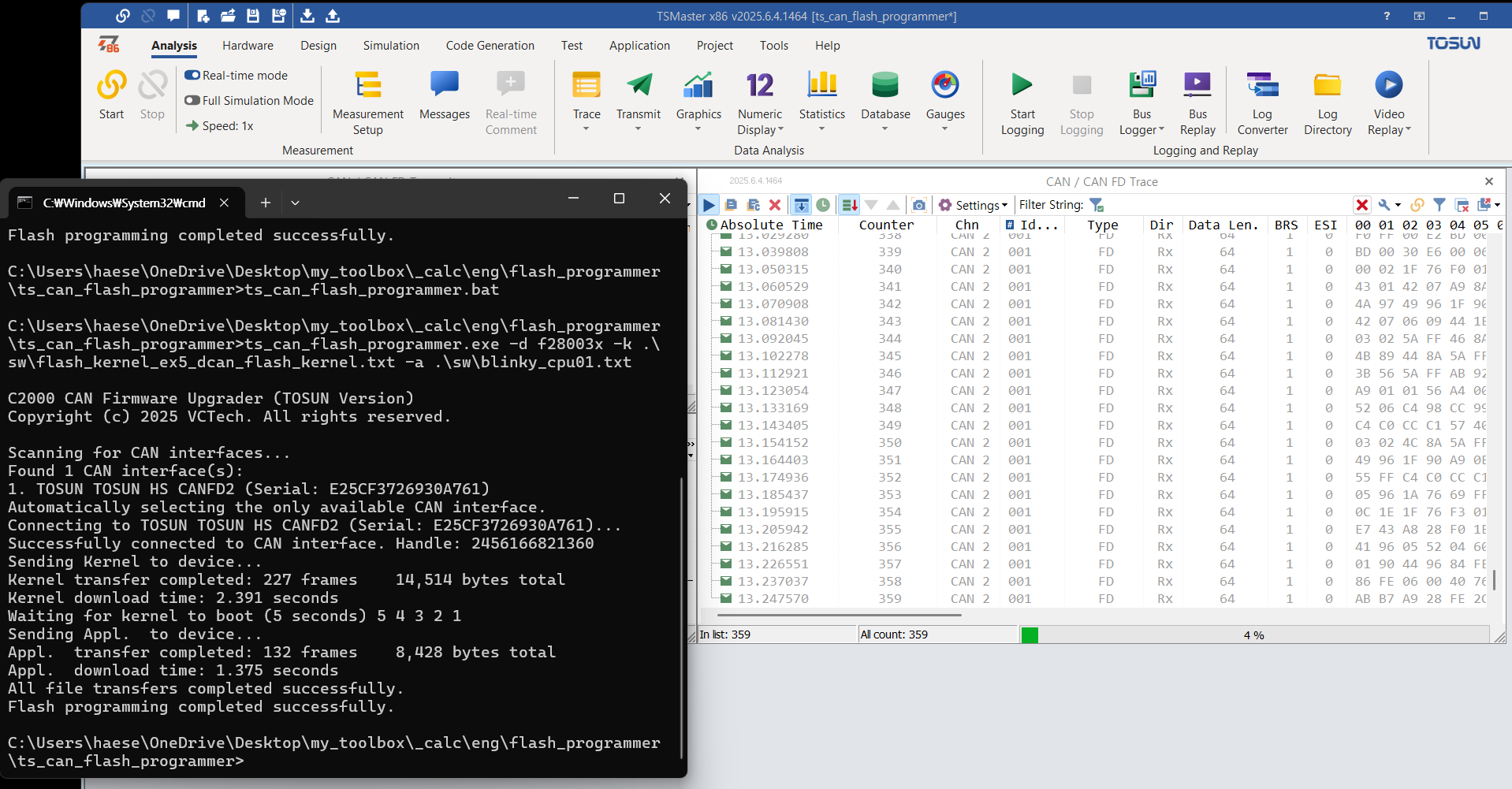 토선 CAN 하드웨어, libTSCAN 라이브러리와 ai 코딩을 이용하면, 진단 통신을 이용하여 차량 형상 점검을 하거나, 소프트웨어 업데이트를 하는 혹은 두 가지가 통합된 실무 전용 프로그램을 (나 같이) 도메인 지식을 갖고 있으나 전문 프로그래머가 아닌 사람들도 개발할 수 있다.