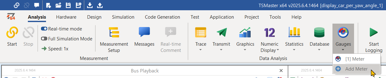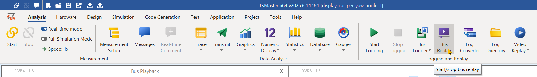- 메인 메뉴/ Analysis/ Bus Replay를 클릭하여 Bus Playback 창을 연다.