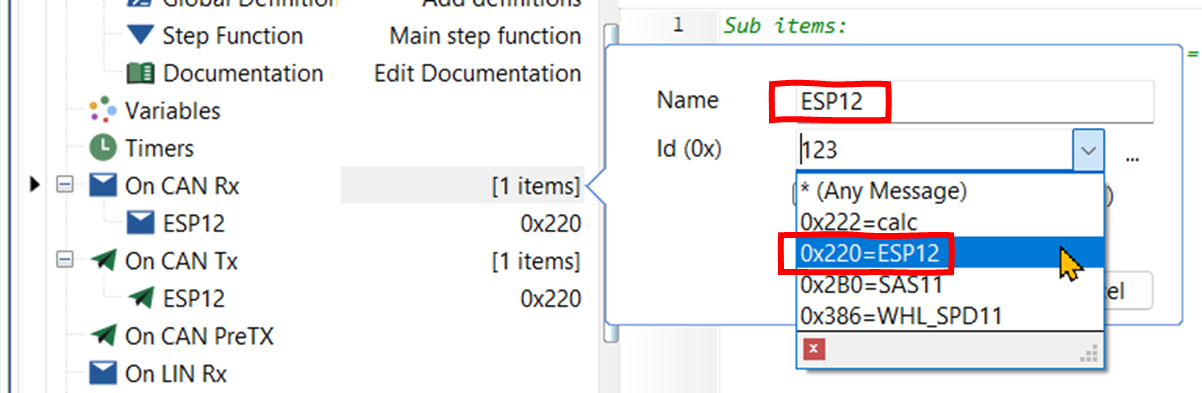 - Id에서 ESP12 메시지를 선택한다. Name으로 나는 메시지 이름을 그대로 사용하였다.
