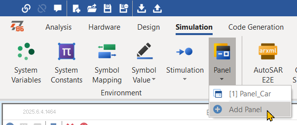 - 메인 메뉴/ Simulation/ Panel/ Add Panel로 새 판넬을 추가한다. 혹은 기존 판넬을 선택한다.