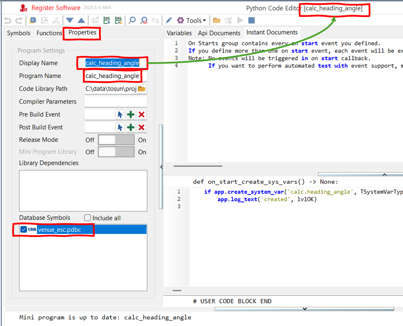 - calc.heading_angle라는 시스템 변수를 선언한다.