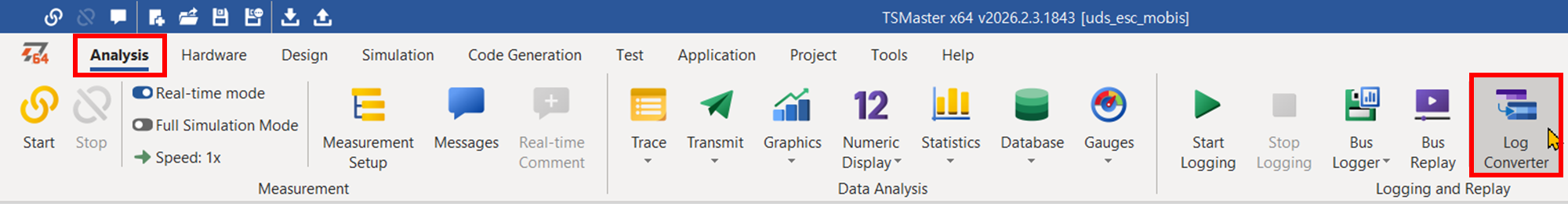 메인 메뉴/ Analysis/ Log Converter를 이용하면 blf 파일을 asc 등으로 변환할 수 있다.