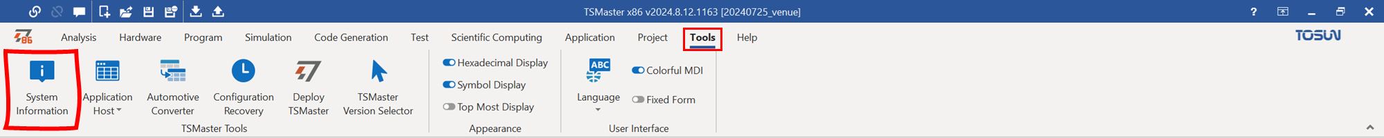 - 메인 메뉴/ Tools/ System Information을 클릭한다.