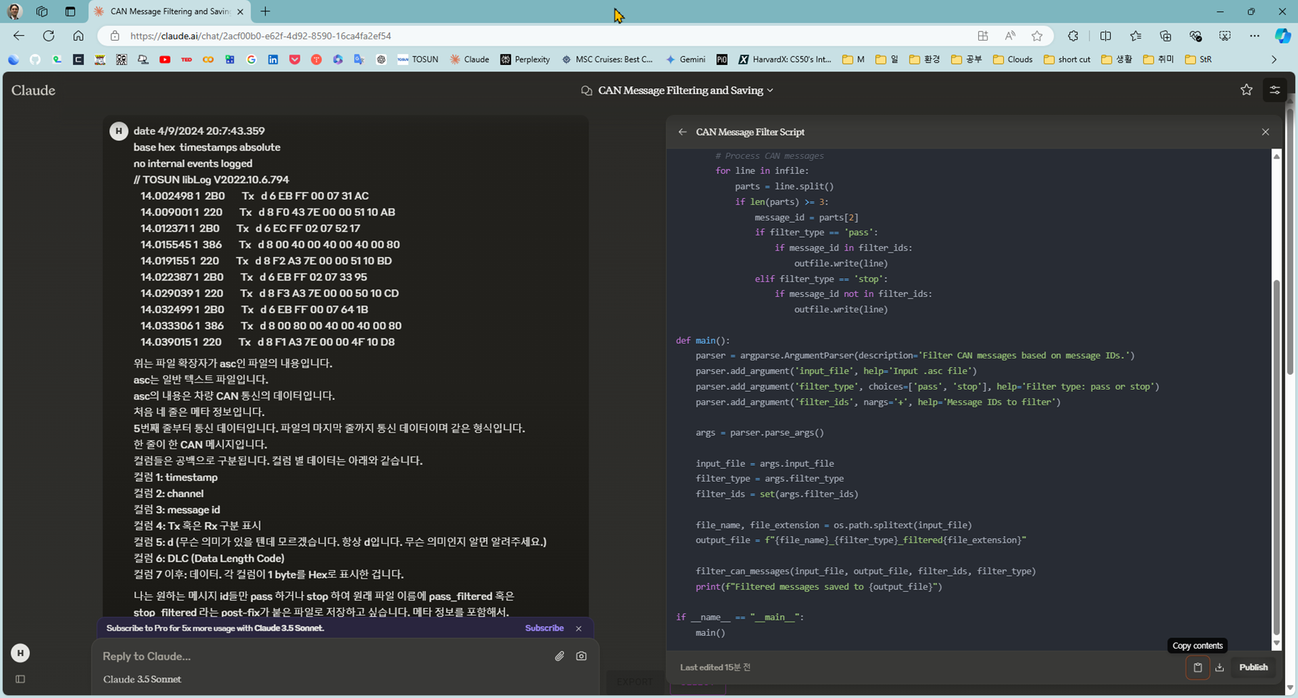 Claude에 특정 메시지 아이디를 필터하는 파이썬 스크립트를 요청하였다. 프람프트
