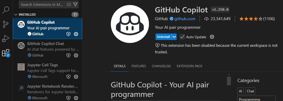 VS Code에 Python 확장팩이 코딩에 유용하다. - VS Code의 Copilot 확장팩을 사용한다.