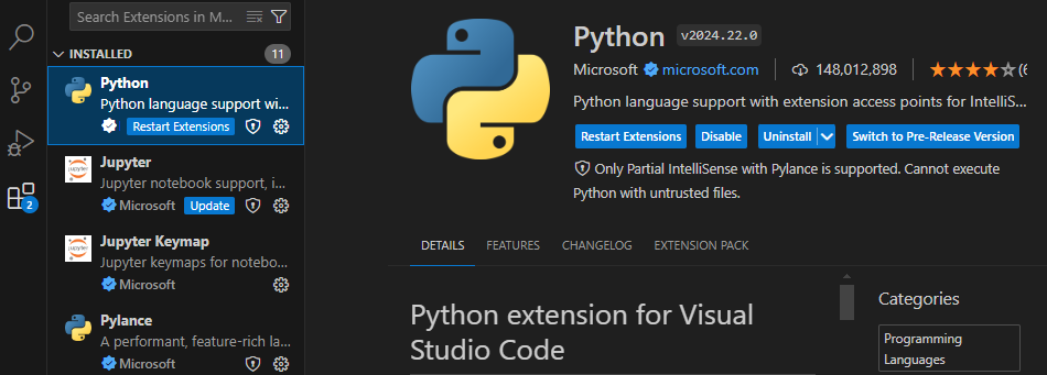 - VS Code의 Python 확장팩을 사용한다.