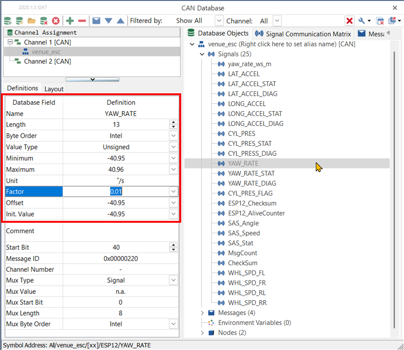 - (변환을 설명하기 위해) yaw_rate_m의 factor와 offset을 YAW_RATE와 다르게 설정한다.