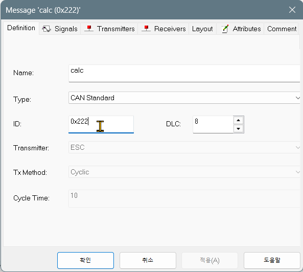 - ID는 다른 메시지들이 사용하지 않는 아이디인 0x222로 임의로 정했다.
