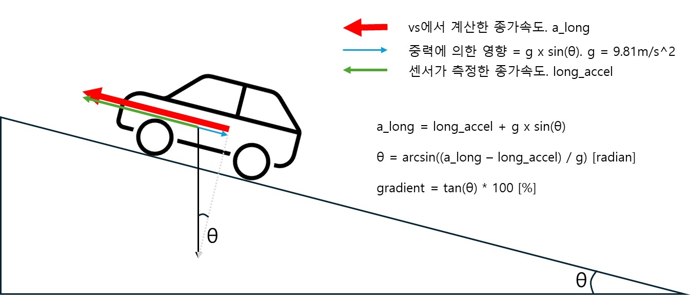 경사도와 long_accel, a_long 사이의 관계는 아래 그림과 같다.