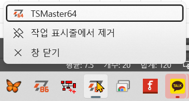 - TSMaster 아이콘에서 마우스 우클릭을 하여 팝-업 메뉴를 띄운다. 메뉴에서 TSMaster를 선택한다. 두 번째 TSMaster가 시작된다. 중간에 TSMaster가 이미 실행 중이라는 안내가 나온다.