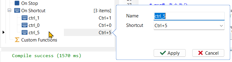 - on_shortcut_ctrl_5() 함수에 아래 코드를 입력한다.