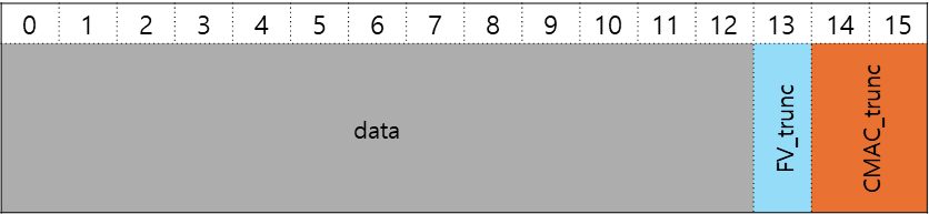 - 14번, 15번 바이트에 CMAC의 상위 2 바이트를 잘라서 만든 CMAC_trunc가 있다.