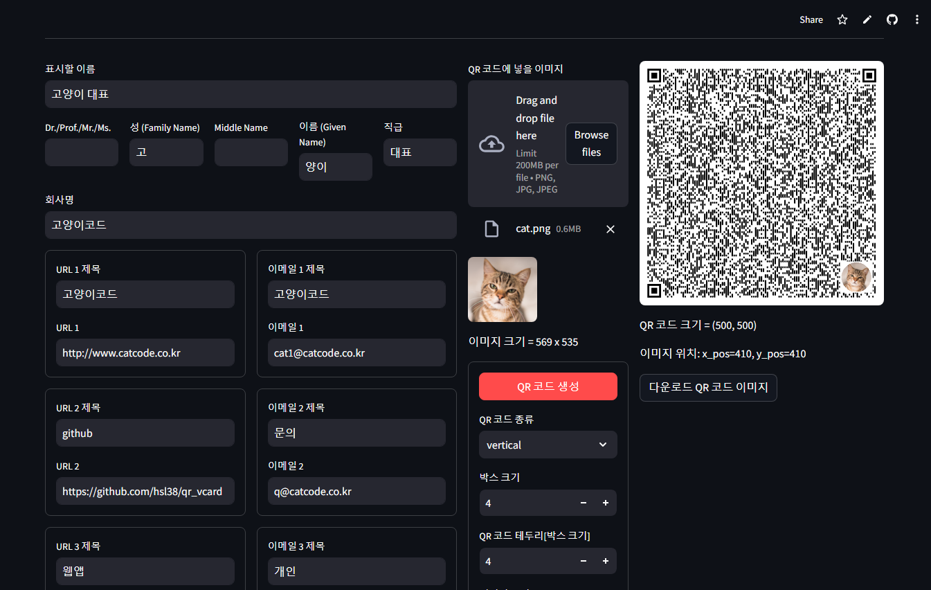 요즘은 스마트폰 카메라로 QR 코드 데이터를 읽을 수 있다. 그리고 읽은 데이터가 명함 데이터(정식 명칭은 VCARD이다.)이면 연락처 앱에 자동으로 입력된다. 사용자가 연락처 저장 버튼을 터치해야 데이터는 저장된다.