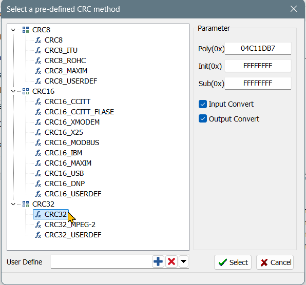 여러 CRC 알고리즘들이 지원된다. - 실험을 해보니 bin 파일과 hex 파일을 지원한다. elf 파일은 지원되지 않는(것 같)다.