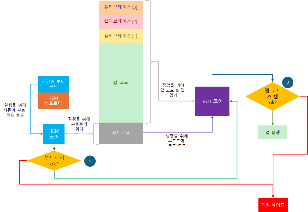 - HSM이 부트 영역의 무결성과 진위성을 확인한 후, 부트로더가 부팅하도록 하는 방법을 시큐어 부트(secure boot)라고 한다.
