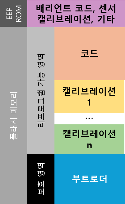 - EEPROM 가격이 플래시 메모리보다 비싸다. 원가 절감을 위해서 배리언트 코드를 플래시에 기록하기도 한다. 요즘의 추세일 거다. 이를 EEPROM 에뮬레이션이라고 하는 것 같다.