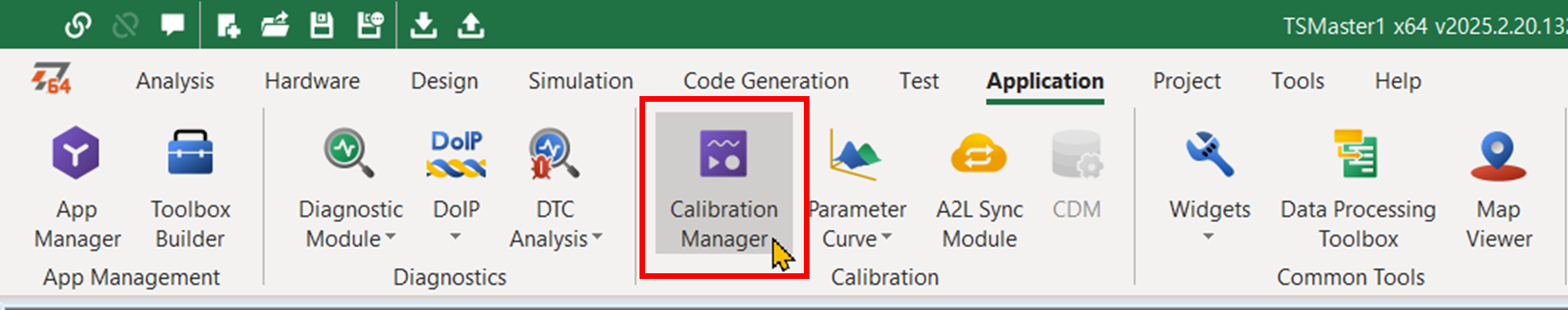 - TSMaster는 여러 프로그램들의 모음이다. TSMaster에는 XCP 모니터링과 캘리브레이션을 위한 Calibration 창 등의 도구들이 포함되어 있다. 아래의 방법으로 Calibration 창을 열 수 있다.