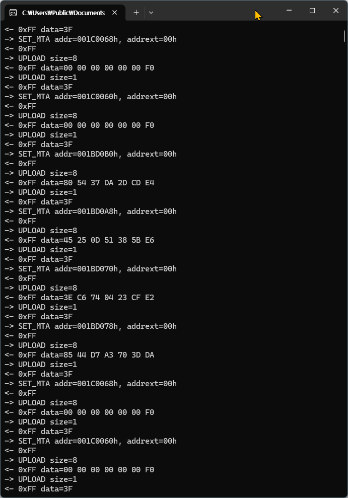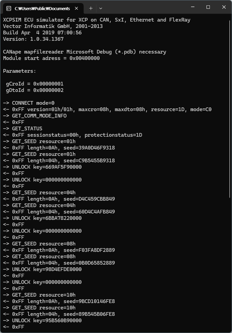 - 도스창을 보면 XCP 연결을 위한 메시지 송수신을 볼 수 있다.