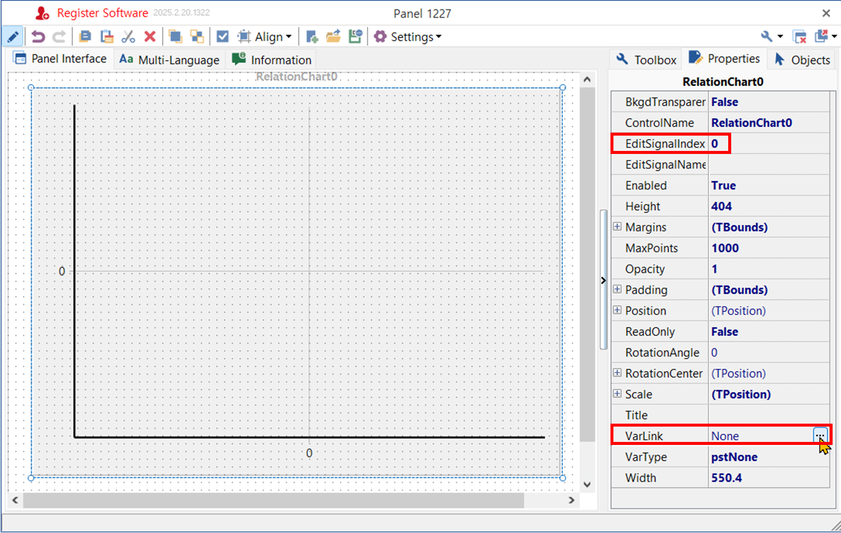 - x축에 연결할 변수를 설정하기 위하여, EditSignalIndex를 0으로하고 VarLink에서 오른쪽 3점 버튼을 클릭한다.