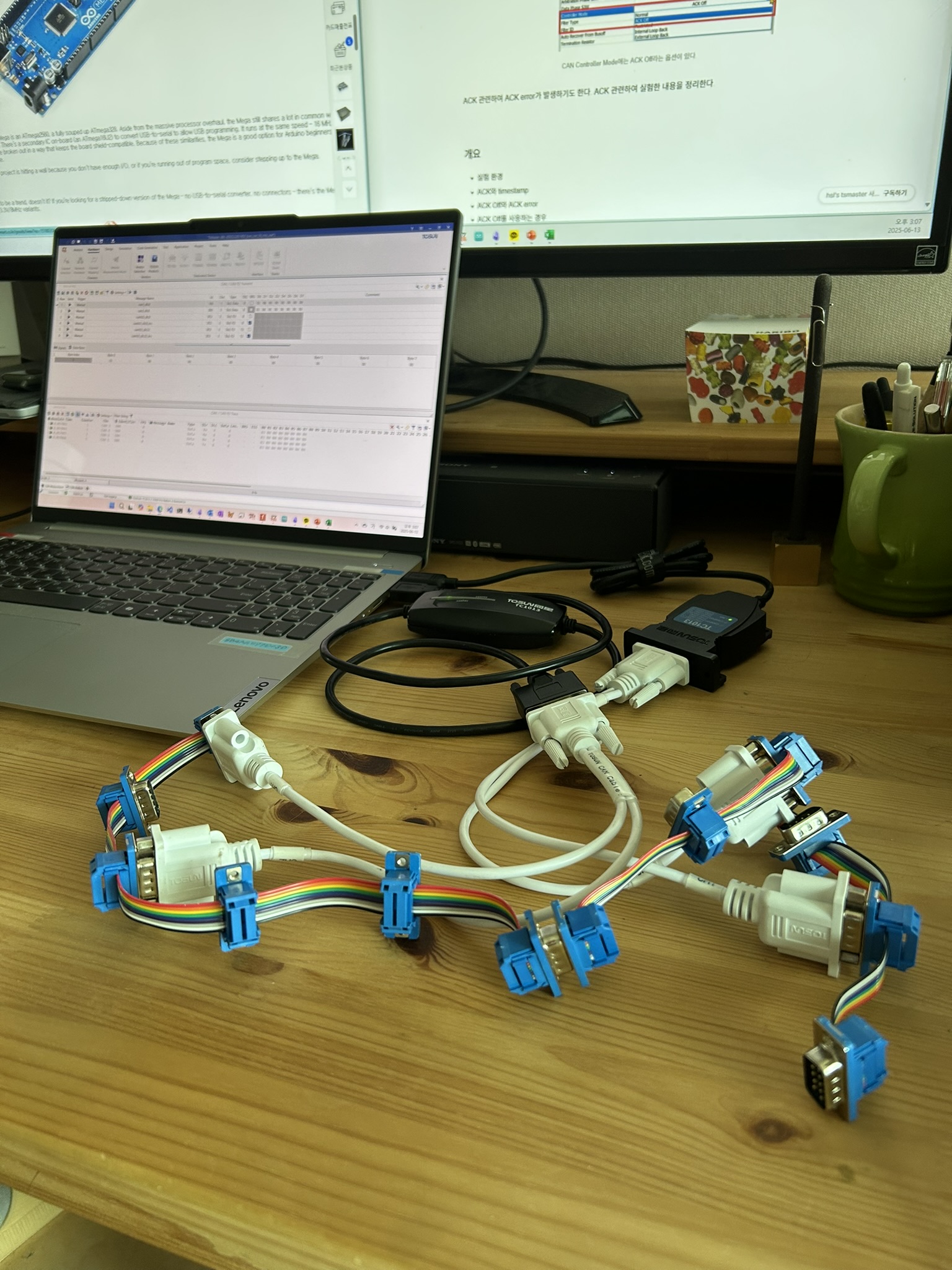 - CAN과 CAN-FD를 섞어서 사용할 수 있다. 비록 CAN-FD 메시지를 수신한 CAN 제어기들쪽에 에러가 발생하지만, 에러가 timestamp, ACK와 ACK error :: hsl's tsmaster 사용기 에서 설명한 경우처럼 재전송 메시지로 CAN 버스를 점유하는 에러가 아닌 일회성 에러이다. 그래서 CAN과 CAN-FD의 혼용이 가능하다.