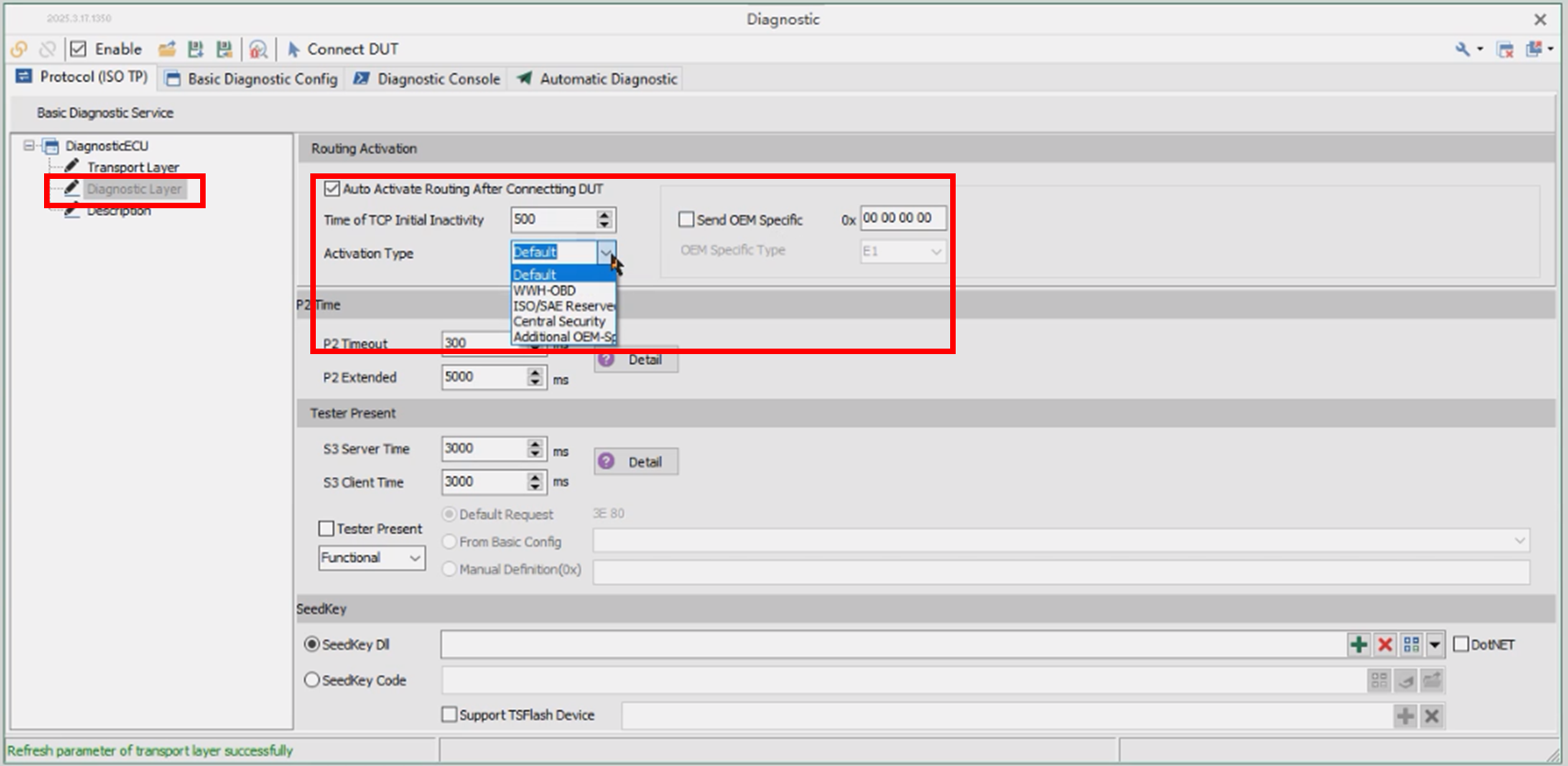- 라우팅 설정은 Diagnostic Layer의 Routing Activation에서 한다.